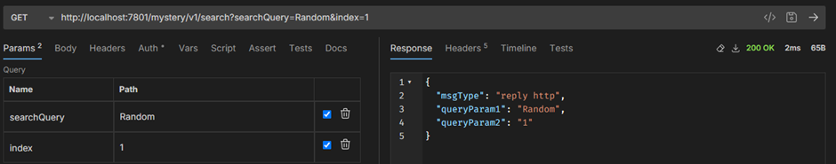 “REST”:{“Input”:{“Method”:”GET”,”Operation”:”getSearch”,”Path”:”/mystery/v1/search”,”URI”:”http://localhost:7800/mystery/v1/search”,”Parameters”:{“searchQuery”:”Random”}}