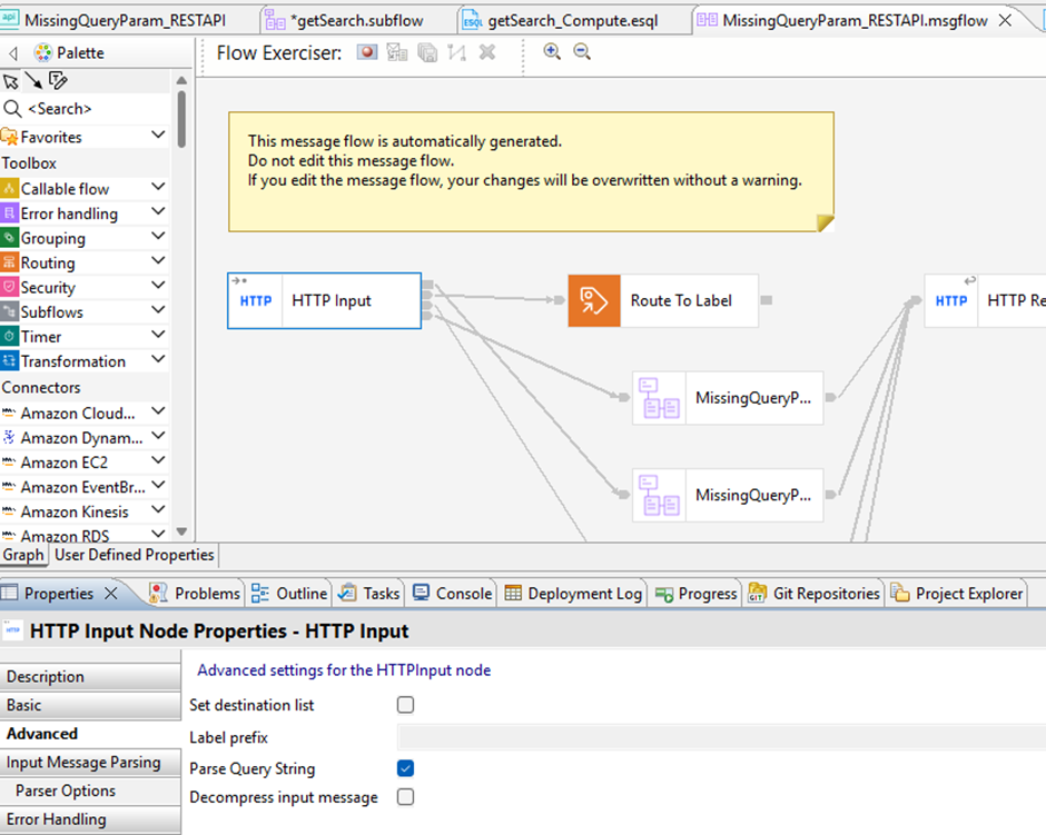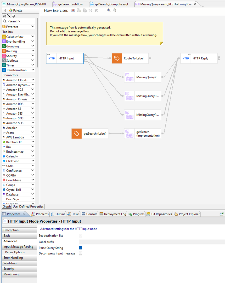 Side note: the Parse Query String option is enabled by default for REST API integrations. If you would use a normal ACE message flow with an HTTP Input node, this isn’t the case and needs to be explicitly enabled.