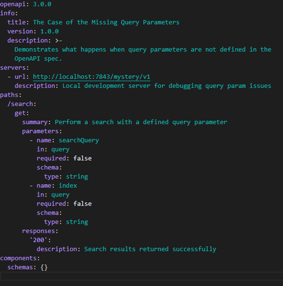 A simple addition to the OpenAPI file that would’ve made it all work, adding the second parameter.